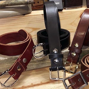 Choose from full grain English bridle leather in brown or black leather, or full grain buffalo leather in a vintage brown. Also, choose either a plain front or a classic hand tooled basket weave front.