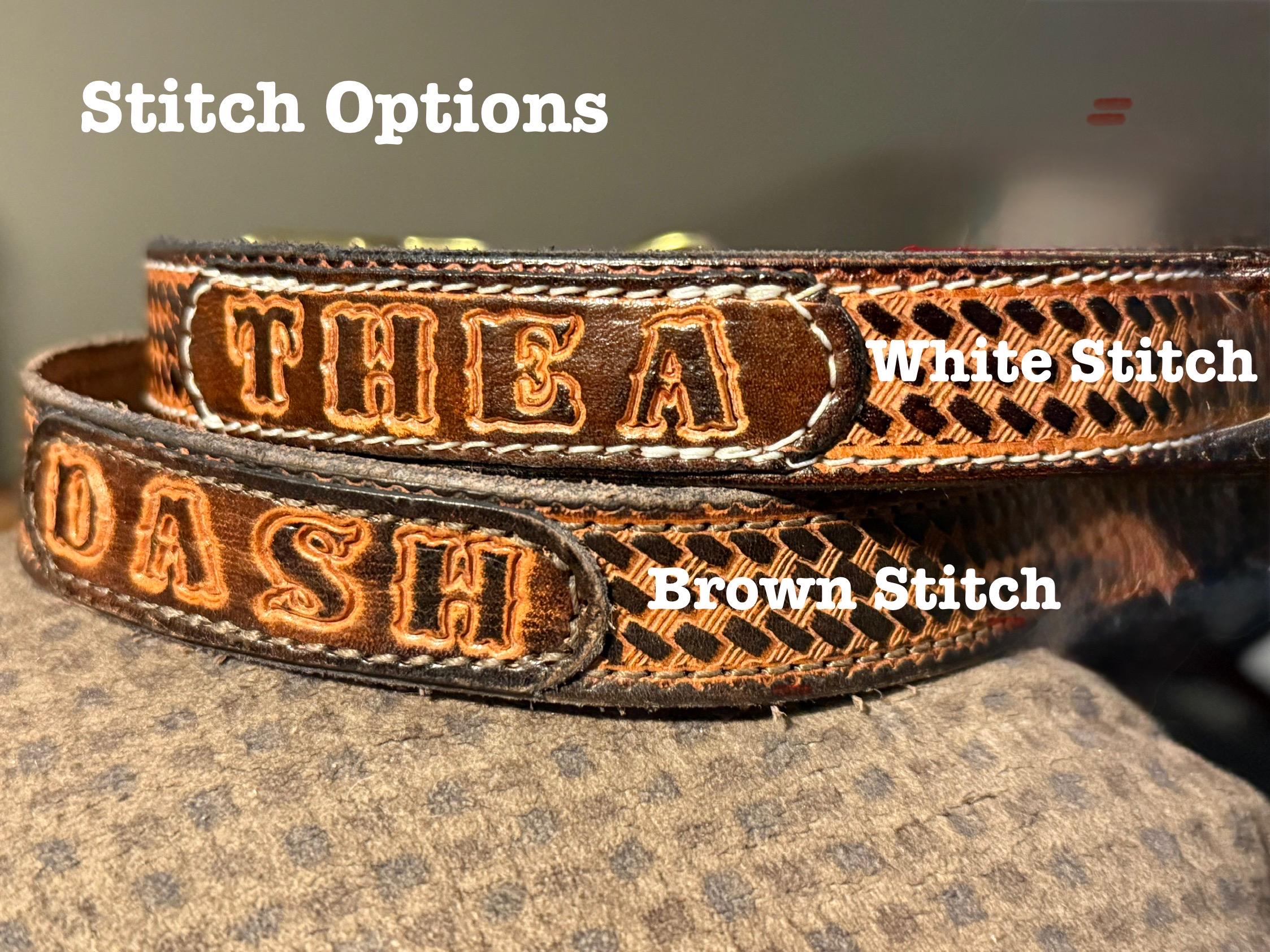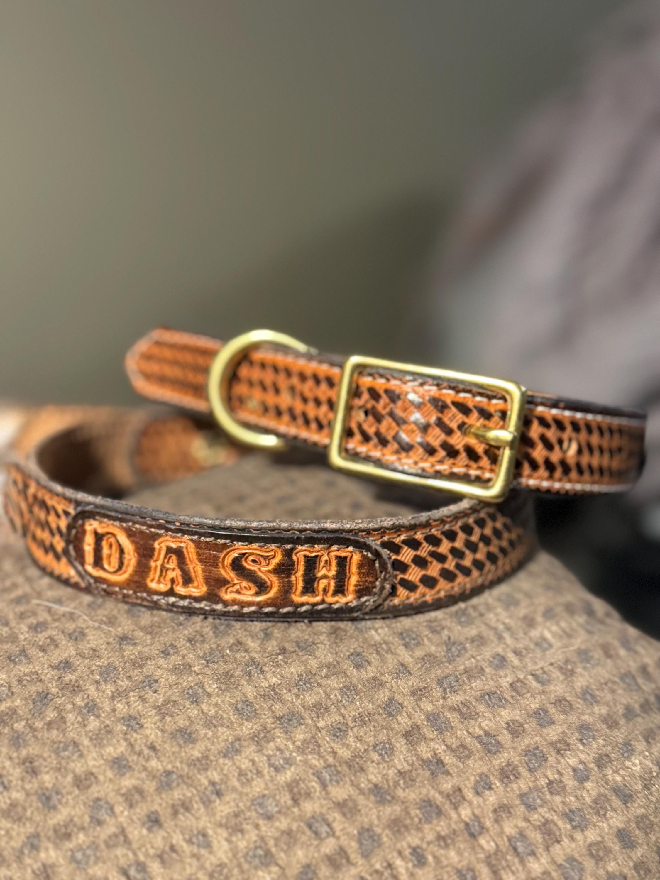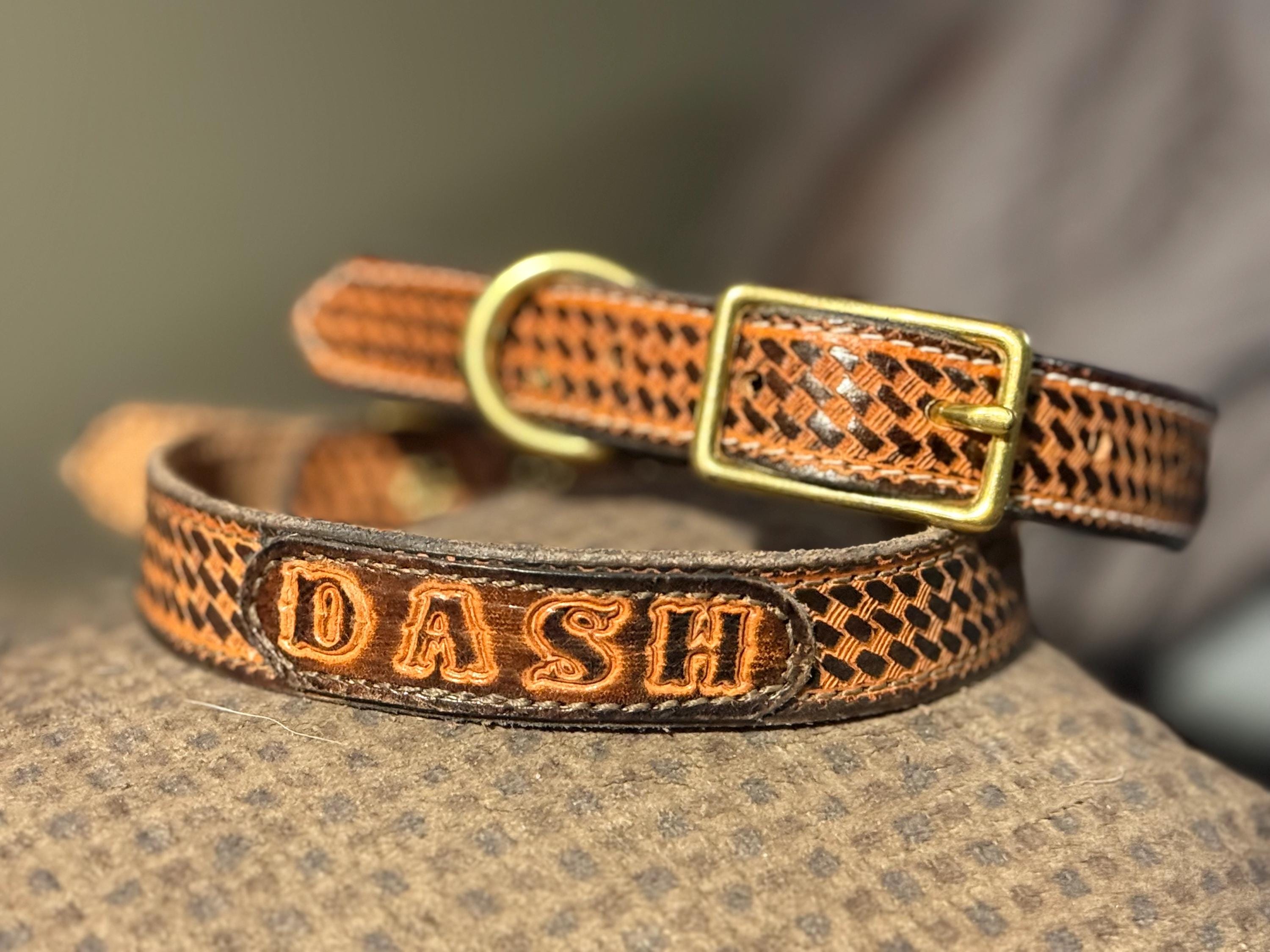Personalized Leather Dog Collar, Handmade Name Tag, Basket Weave, Full Grain, Brass or Stainless Buckle, Made in the USA