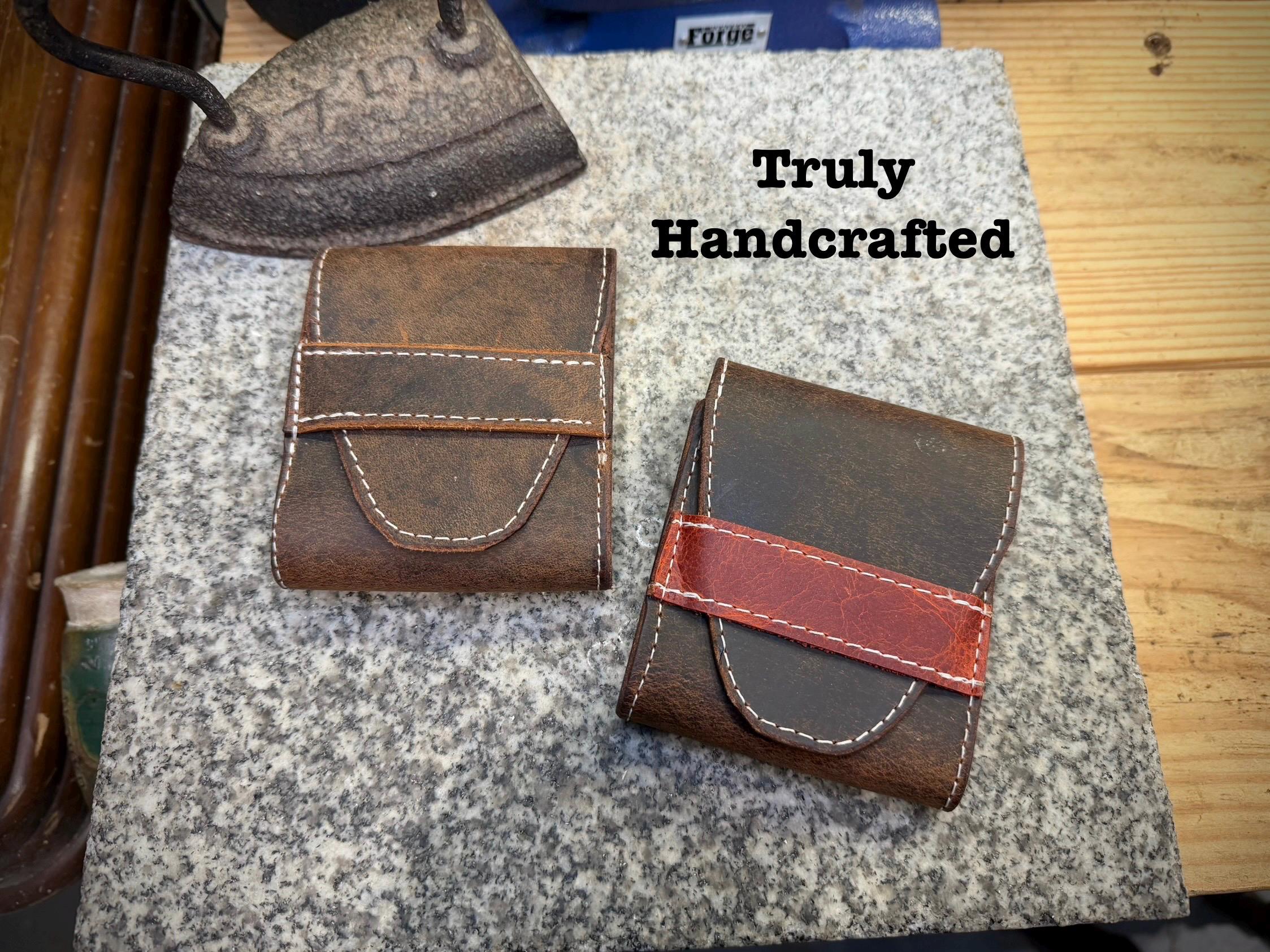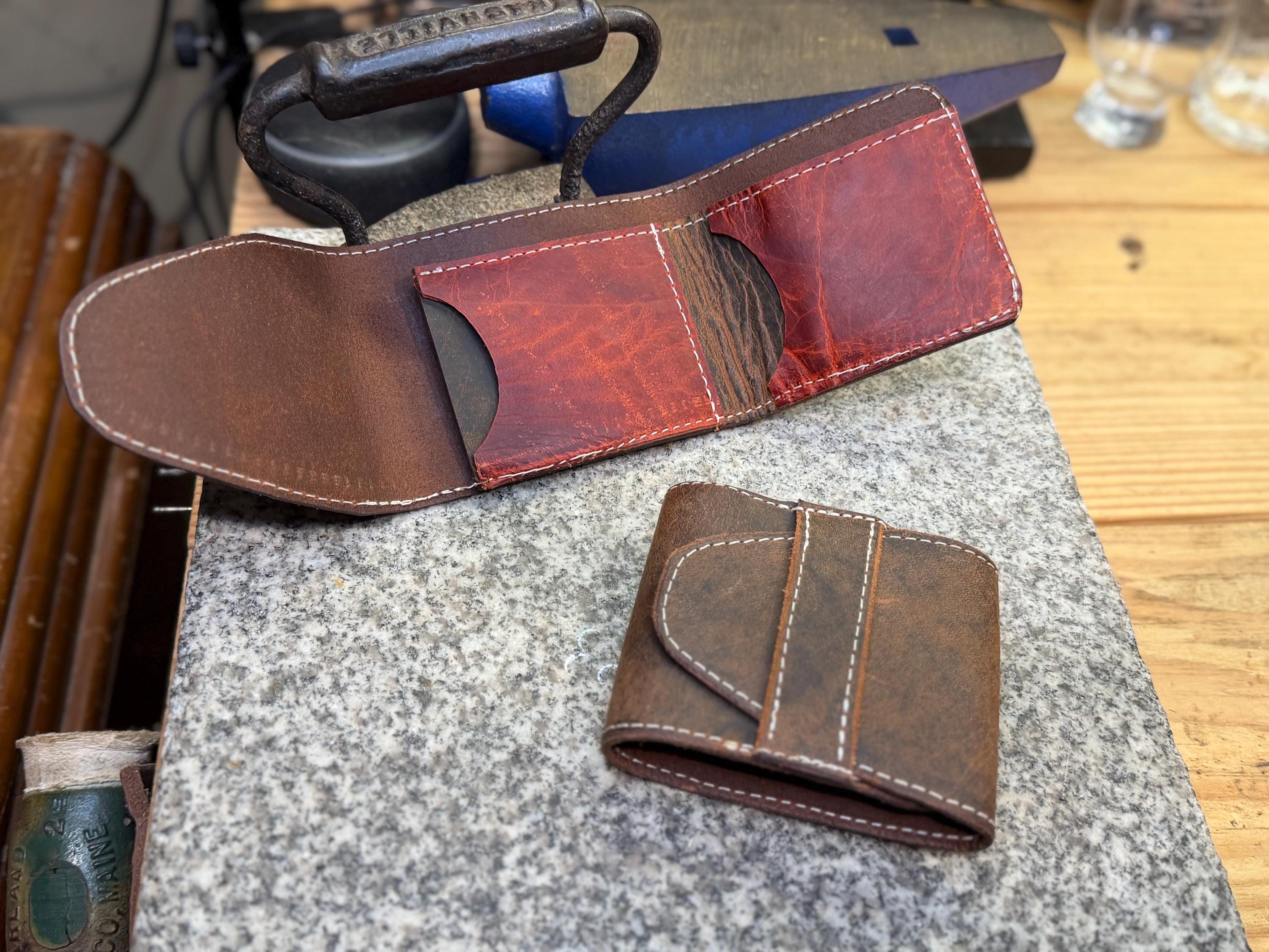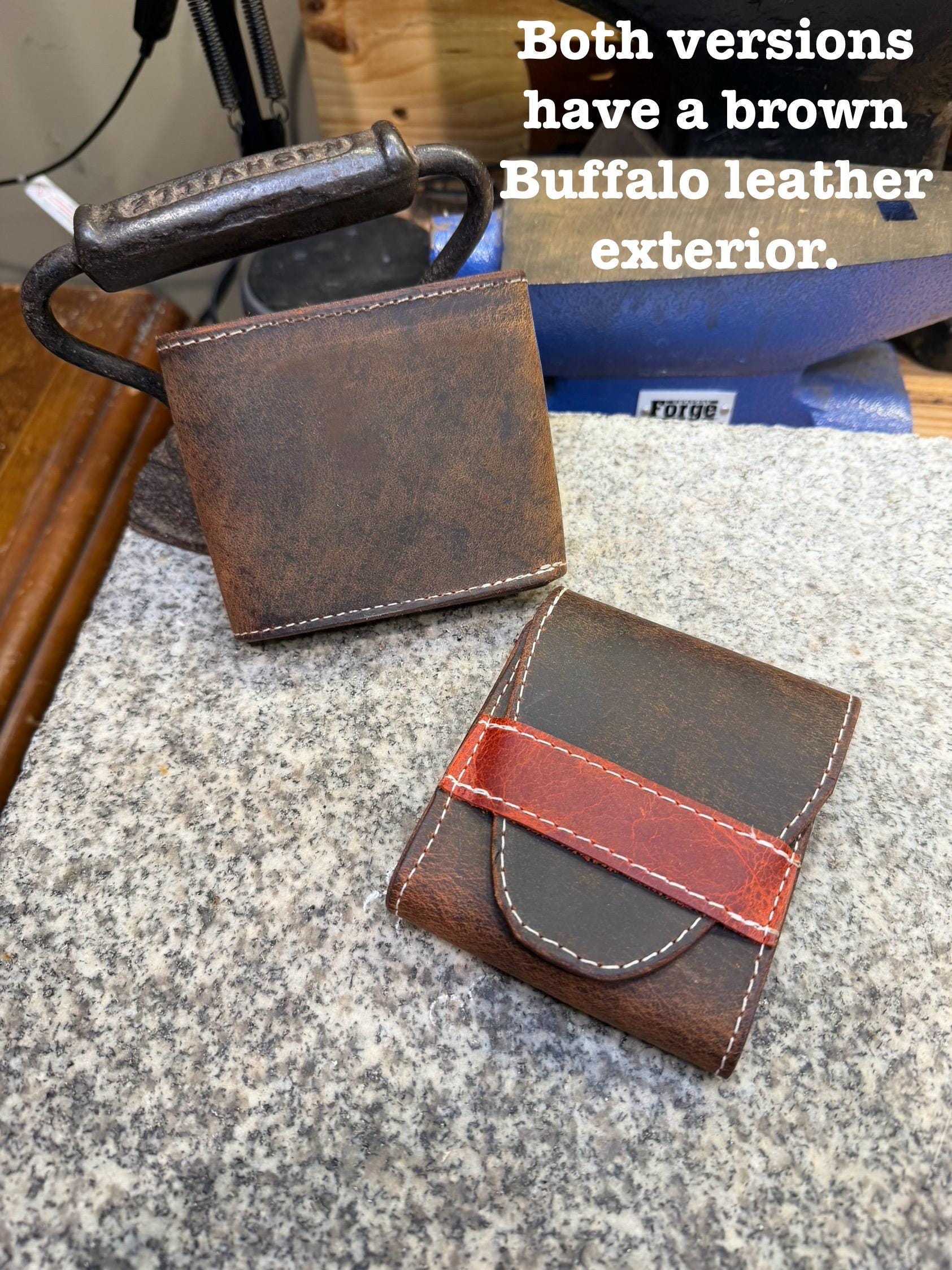 Leather Slim Fold Wallet, Handmade Full Grain, Buffalo, Bison, Amish Made in USA