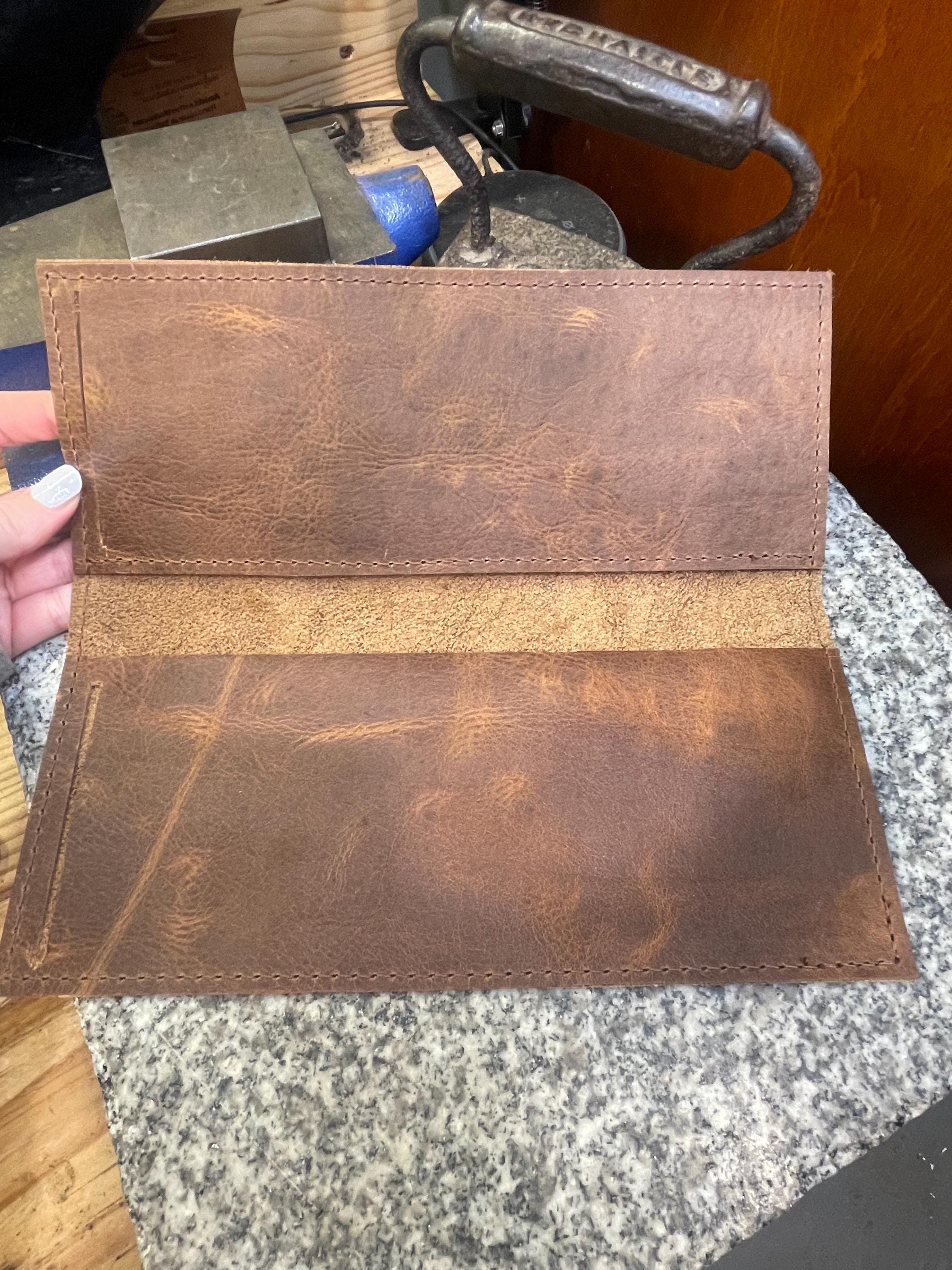 Leather Business Checkbook Cover, Side Tear or Standard Check Holder, Handmade Full Grain Bison Leather, Made in USA