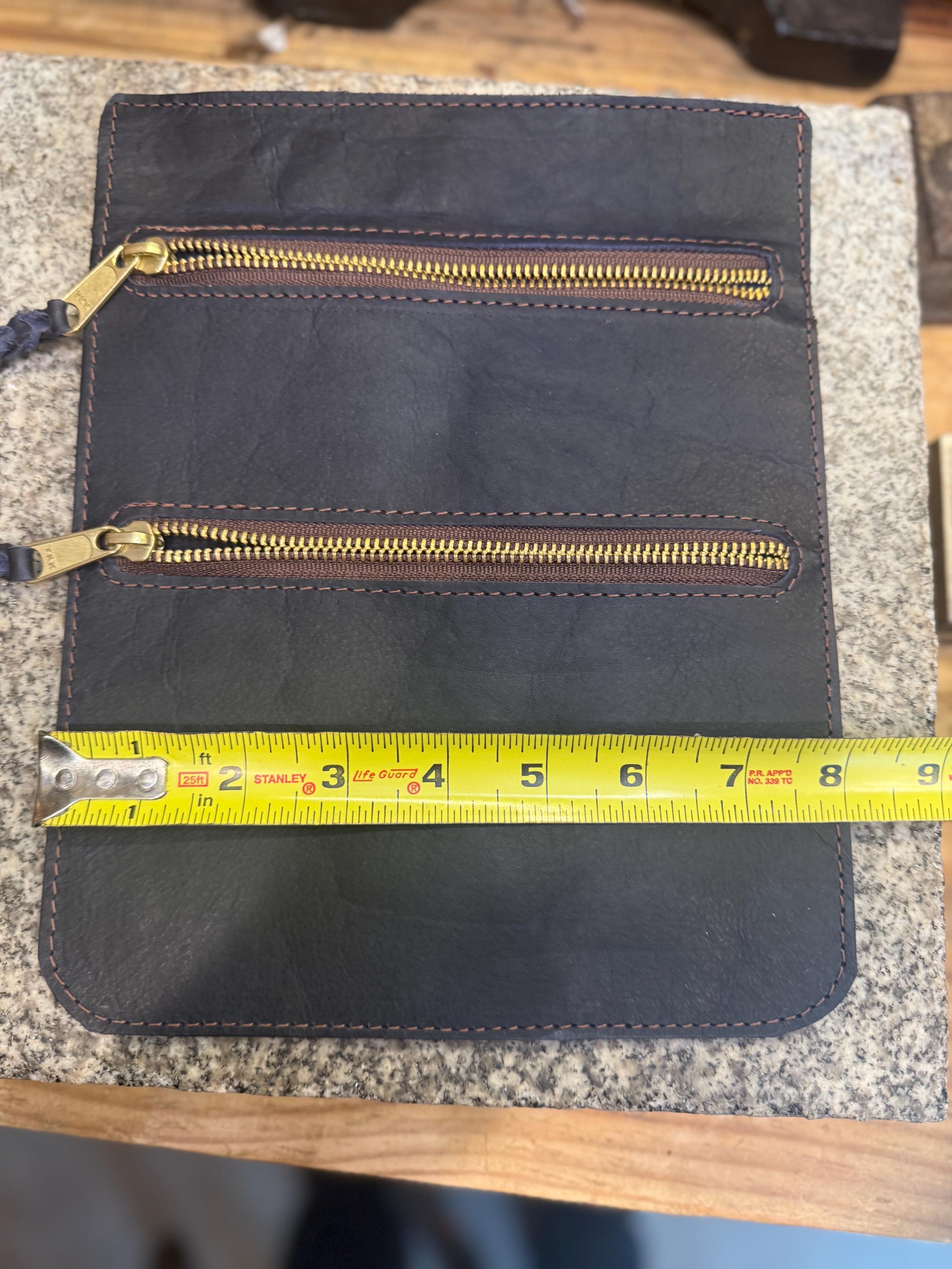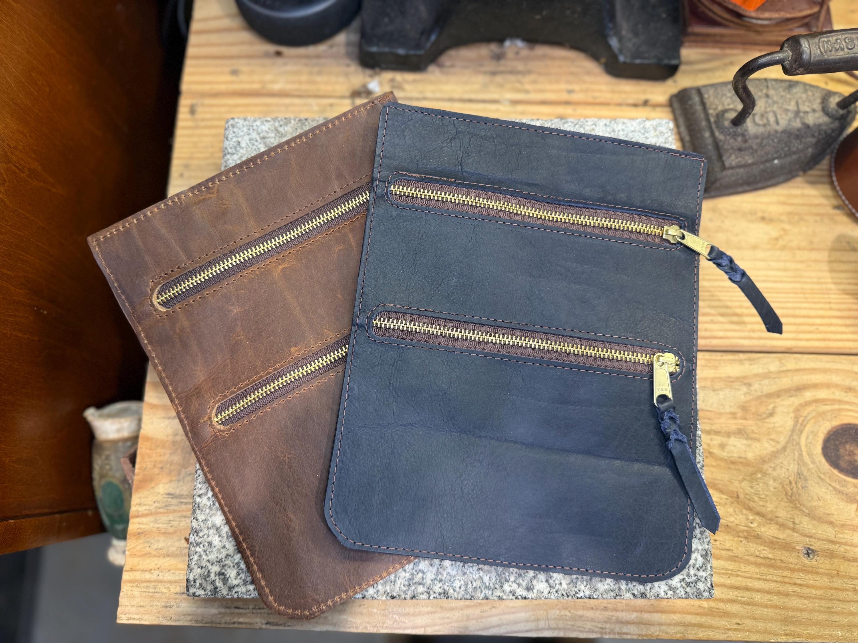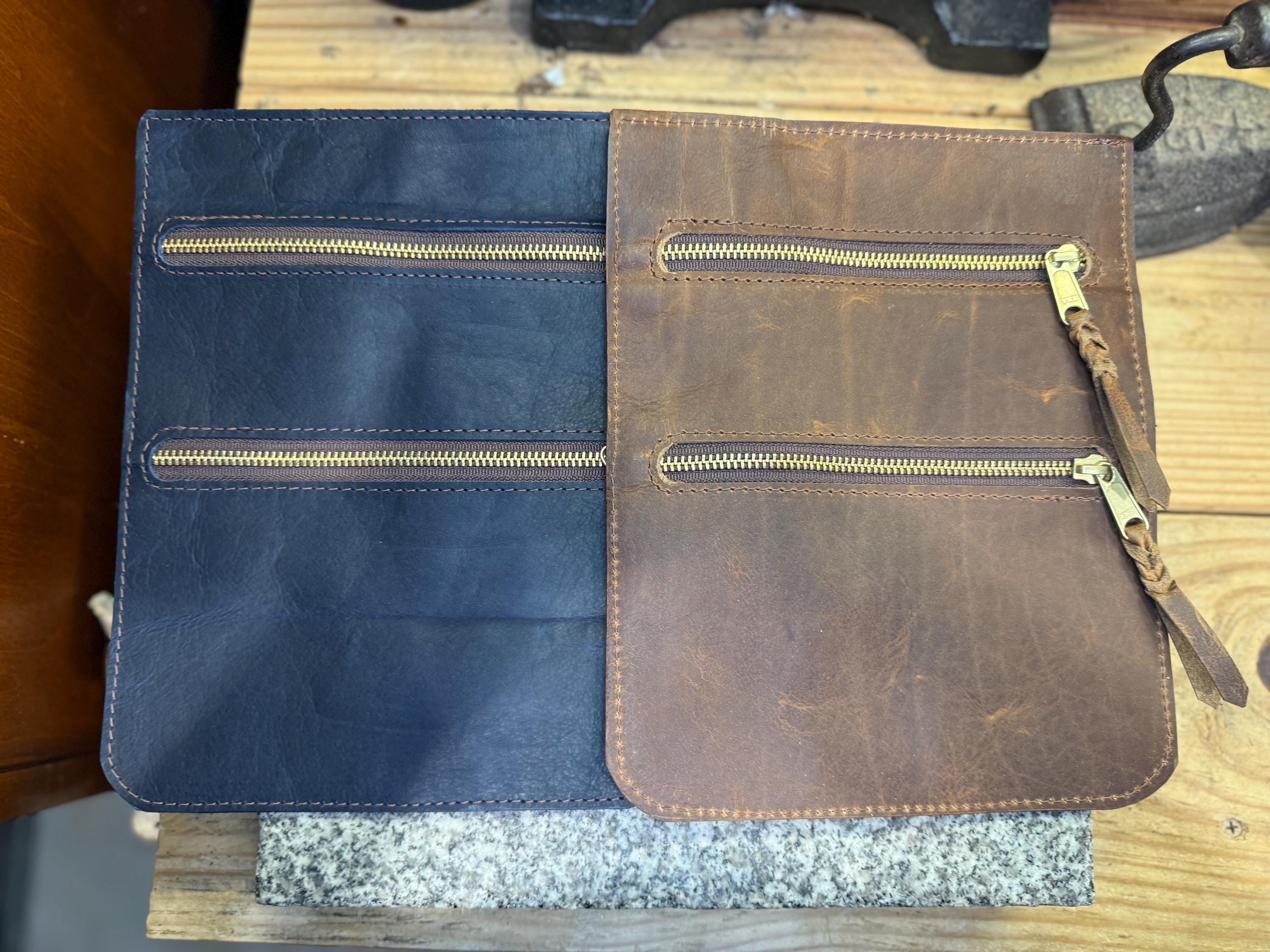 Leather Pouch for Belt, Two Pockets, Solid Brass Zipper, Made in the USA
