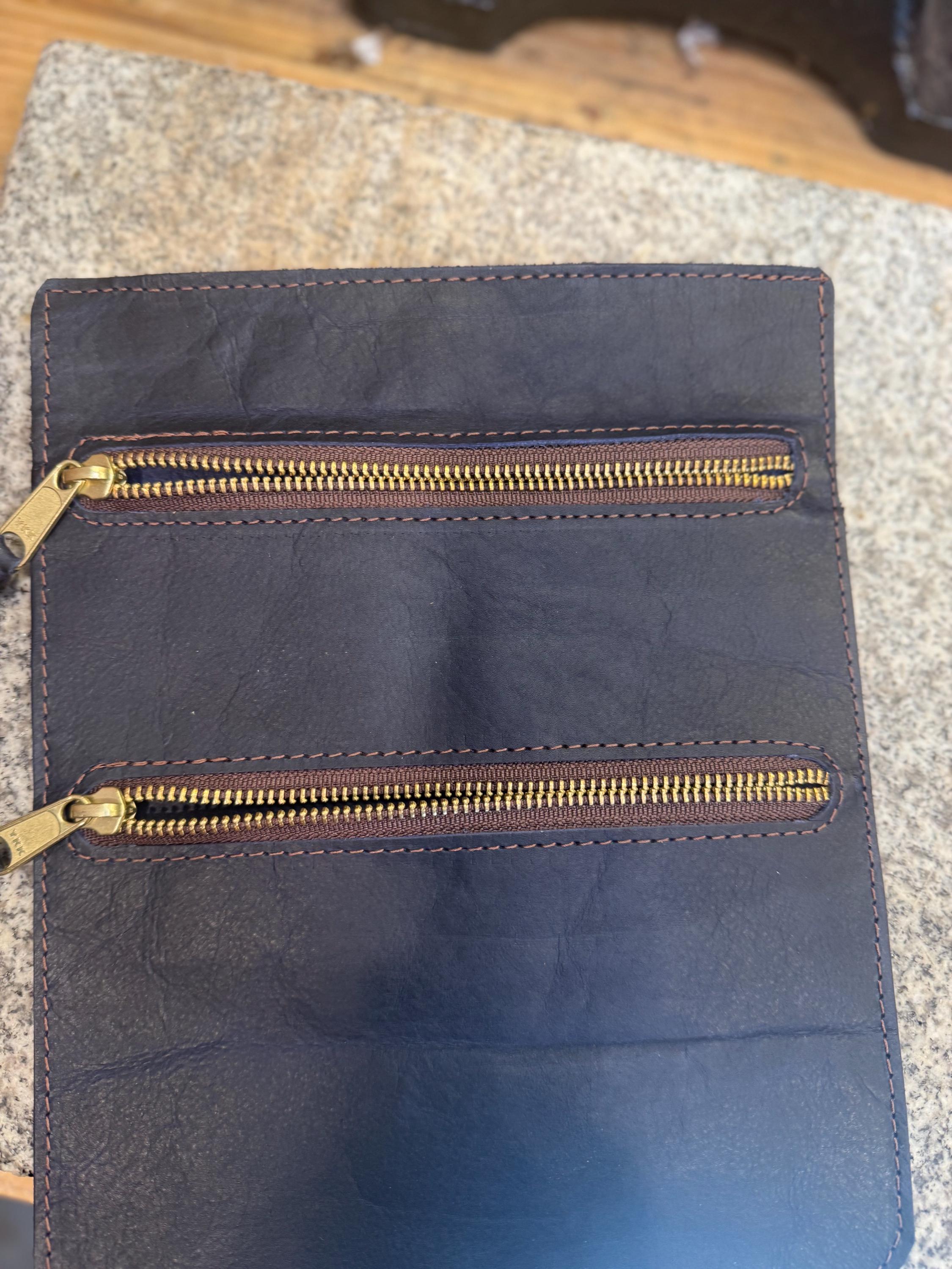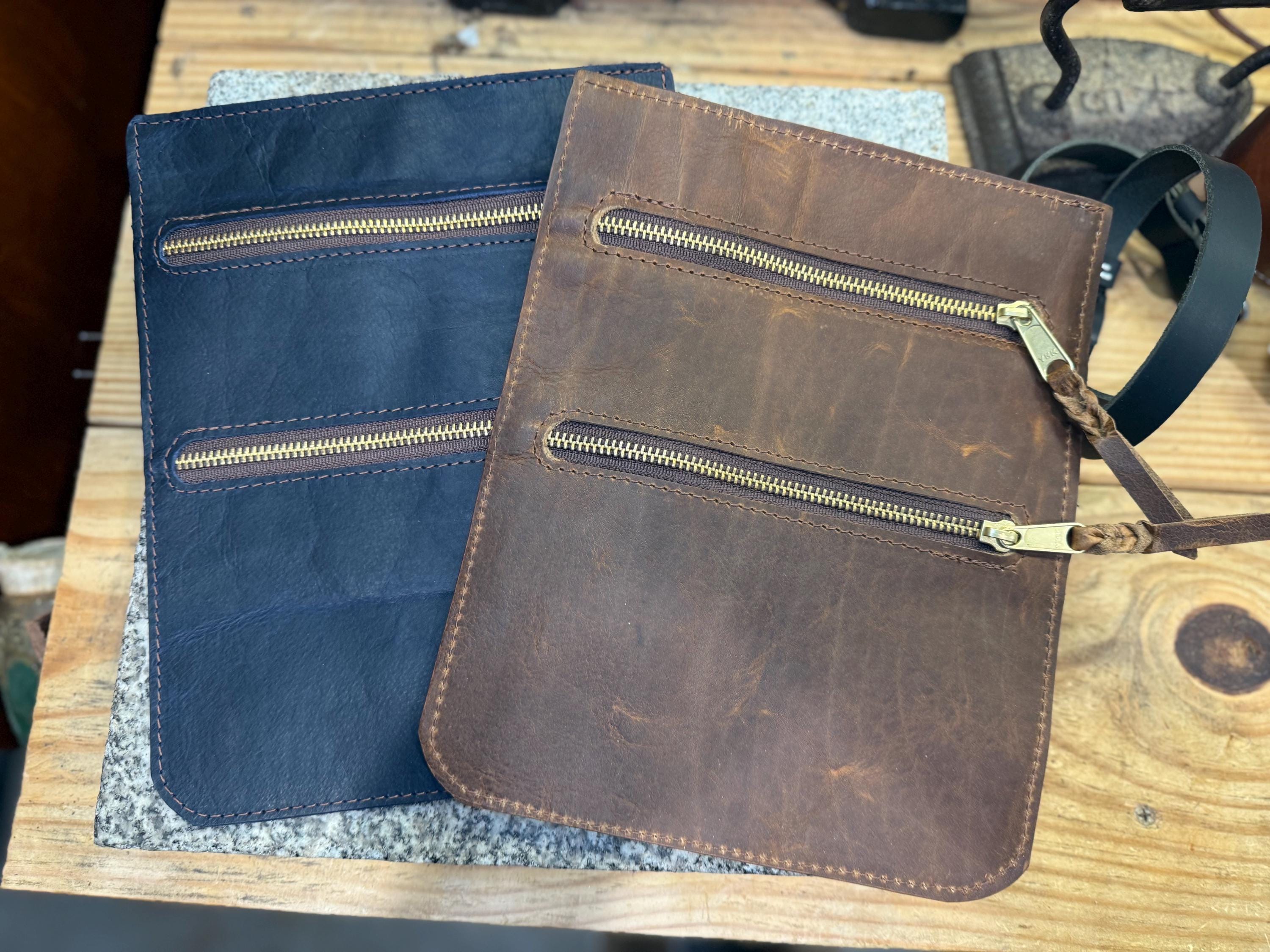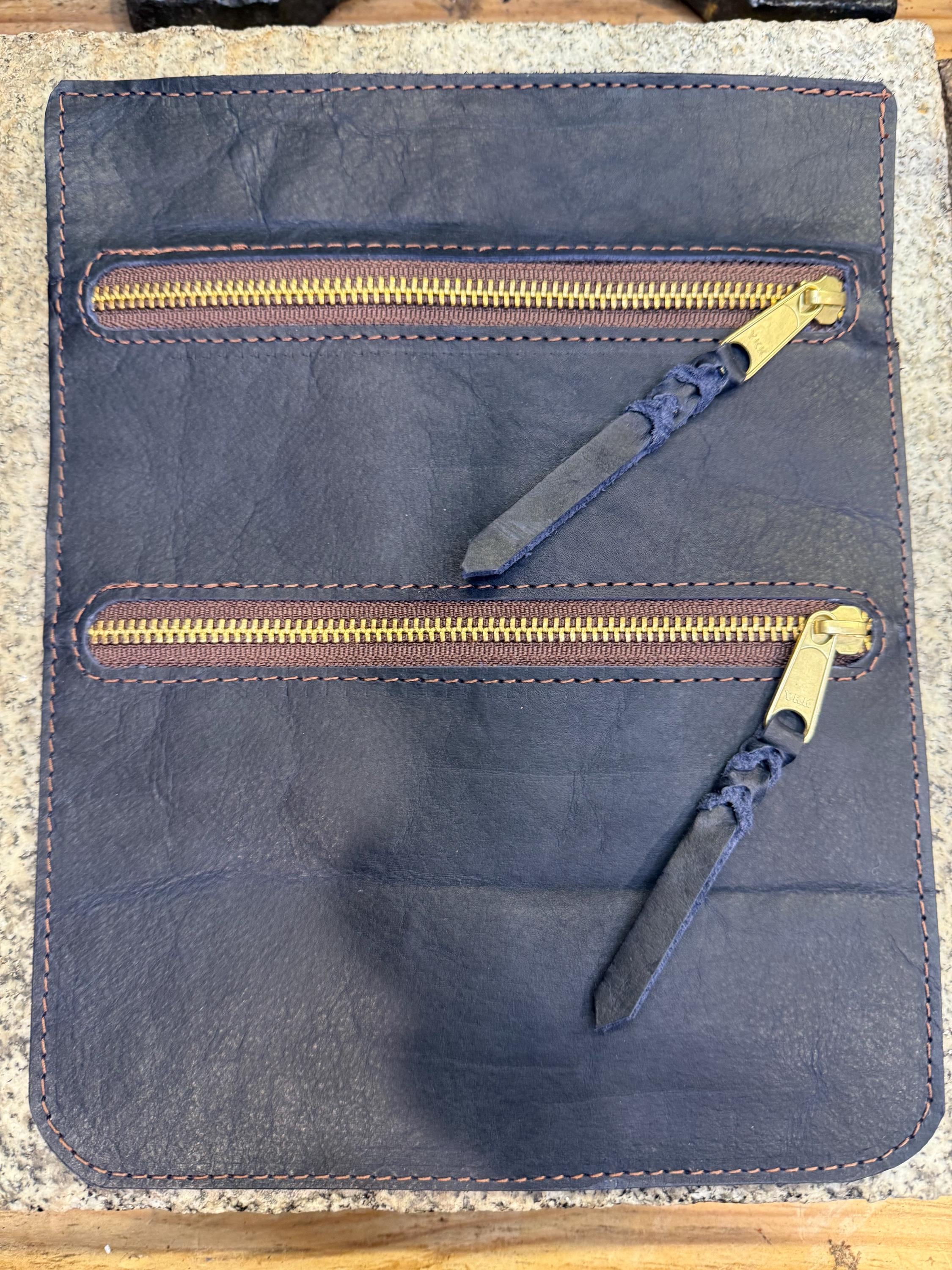 Leather Pouch for Belt, Two Pockets, Solid Brass Zipper, Made in the USA