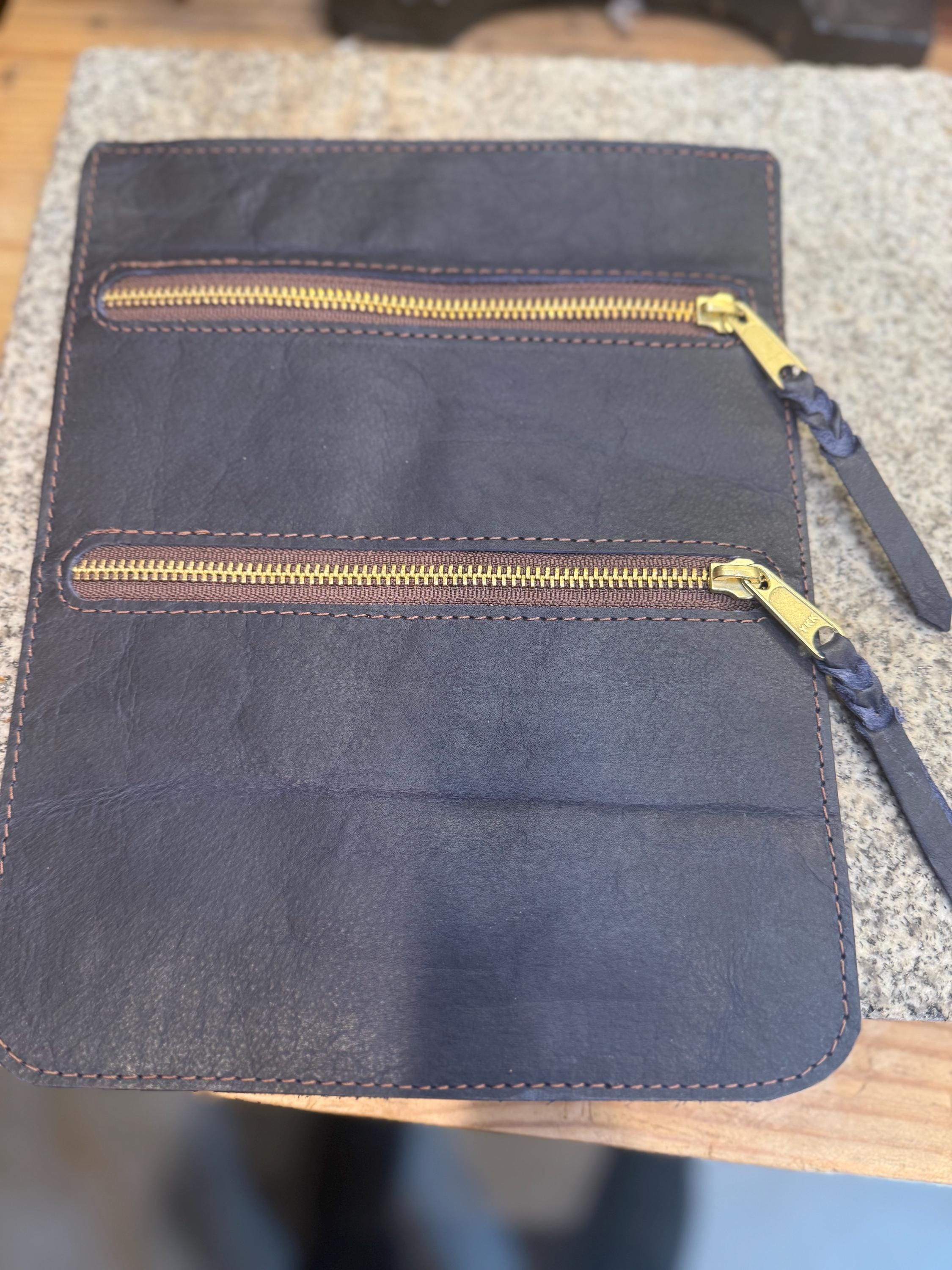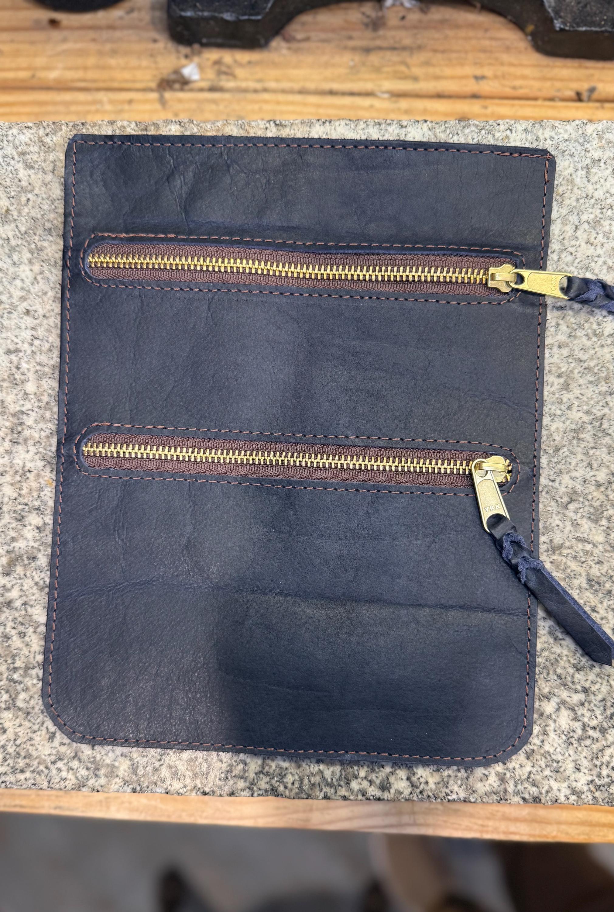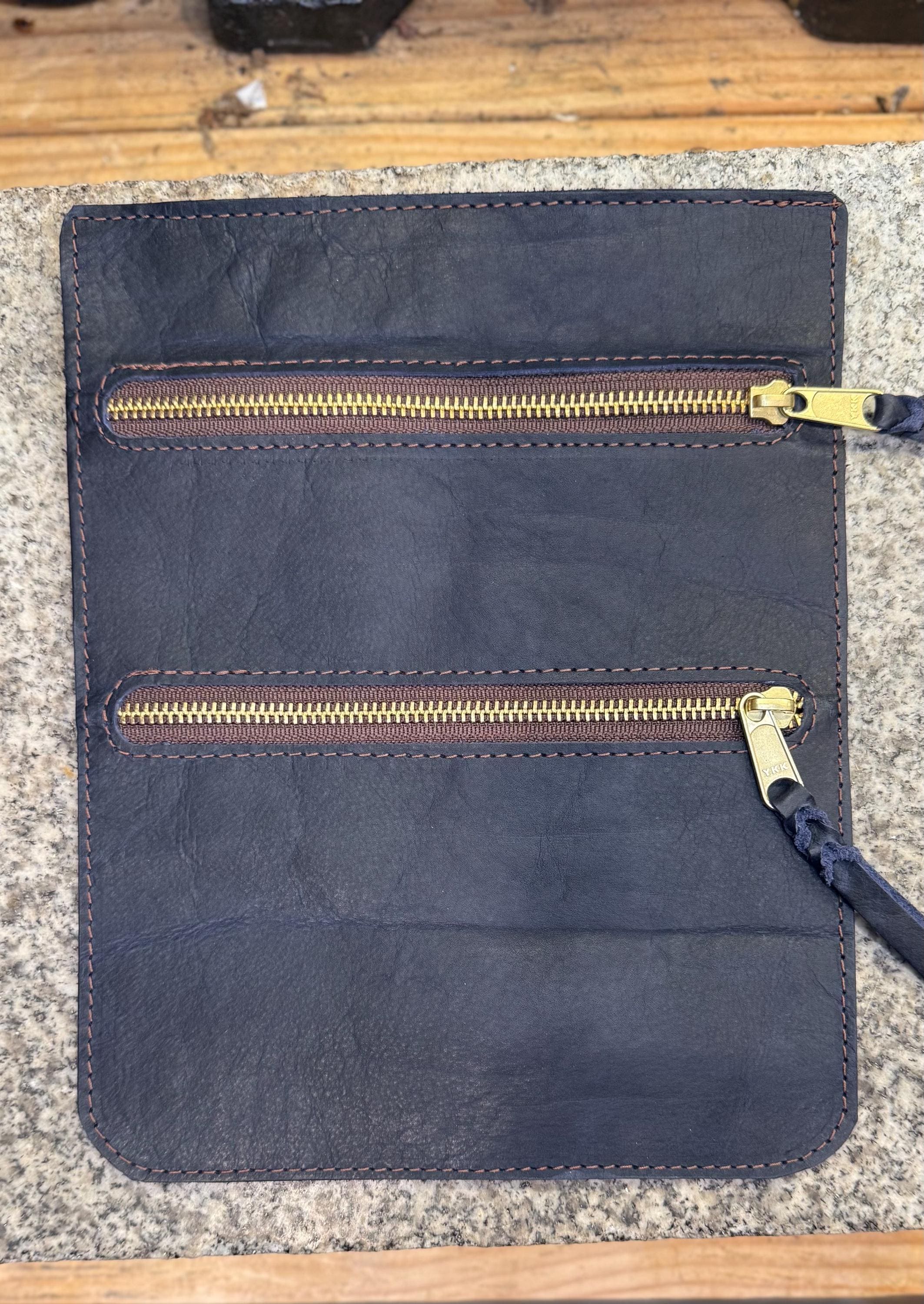 Hand-cut from full-grain American bison leather, and motion stitched for strength. The bag features two pockets for organizing coins, tickets, or any small essentials.